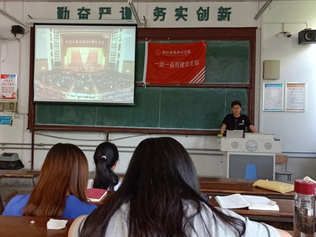 为了纪念五四运动,让同学们达成共识,传承五四精神,2019年5月13日,qm球盟会18级电子信息工程专业团支部在昌黎校区2号楼14阶教室进行了纪念五四运动100周年专题学习活动。公司分团委负责人以及团支部全员参加了本次活动。